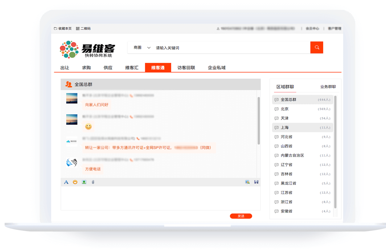 帮助用户建立全国业务互动社区,达到同行之间的及时多维沟通